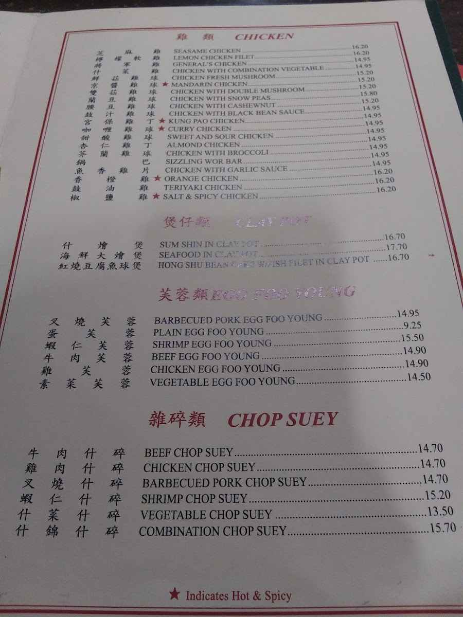 - Egg Foo Young: From Barbecued Pork to Shrimp, there’s a variant for every palate, all priced around $17.