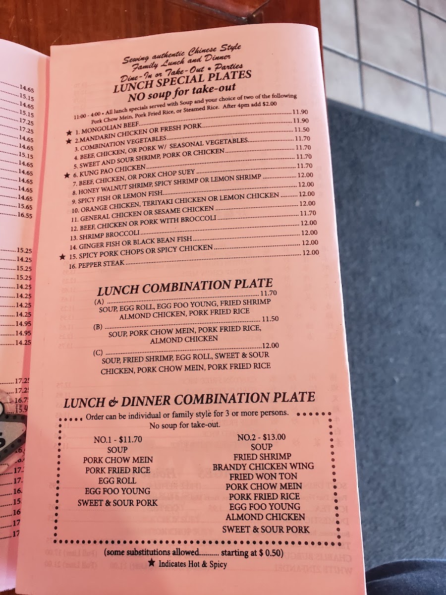 - Lunch Special Plates: Dive into the bold flavors of Mongolian Beef or Sweet and Sour Chicken, perfect for a satisfying dinner.